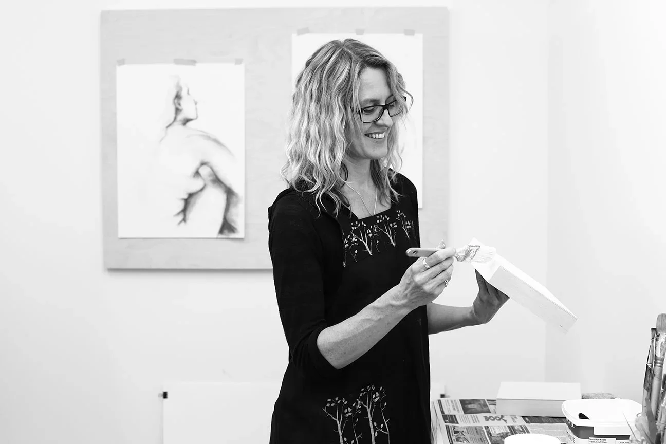 The focus of Joanne’s drawings and paintings is mainly figurative. She especially enjoys life drawing, with the practice and challenge of drawing the figure. Most recently she’s drawn dancers, with the added challenge of constant movement and flow. Her drawings often become studies, inspiring new works and explorations in other media. Expired and experimental films have influenced a shift in her painting colour palette to less realistic tones and a more playful and abstract approach to colour.